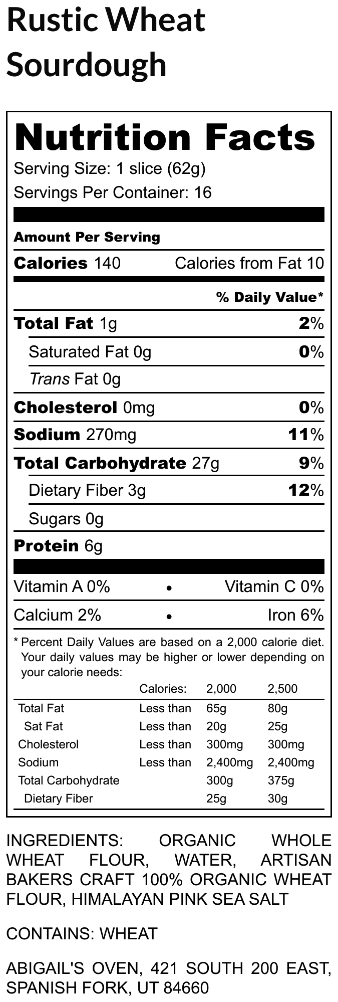 Our 100% whole wheat sourdough has deep nutrition, delicious flavor, and good texture. Made of freshly ground non-GMO, old-strain wheat, and cultured with an old-style artisan process.